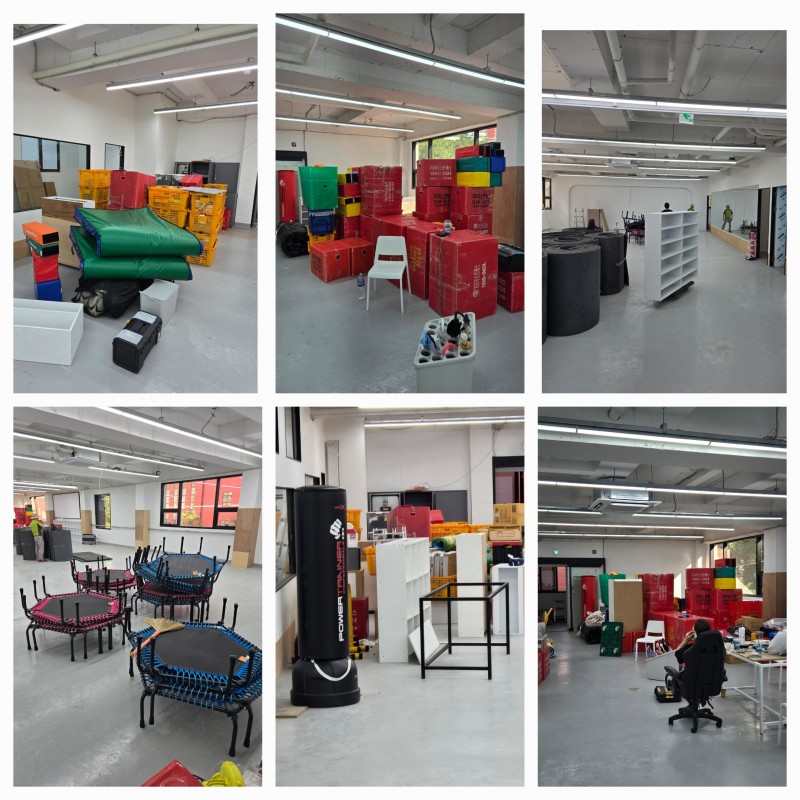 태권도.점핑등 체력을 길러주는 태권도체육센터가 이전하여 준비작업밑 보양작업을 시행하였습니다.